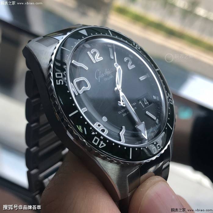 但我最后还是选了大日历款的原因,最主要是就因为被大日历和机芯毒到了。这两项设计,是格拉苏蒂原创独有的,在其他地方看不到的。 玩格拉苏蒂原创的应该都有感触,这个牌子的亮点有很多,但能称得上品牌招牌的,大日历肯定算一个。十位数与个位数无缝衔接,同平面,绿底白字,和盘面融为一体,又特别的大气。而且还很实用,要签字的时候,稍微瞄一眼手表就能很清楚的看到今天是几号。 机芯的话,我自己觉得是德国腕表很重要很有吸引力的一部分,要是看不到机芯,总是觉得少了点什么。因为德国制造的机芯,无论是板路还是打磨方式,都是自成一派,和我们常见的瑞士机芯有着比较明显的区别。 seaq大日历加载的是36机芯。关于这款机芯的测评,网上有很多,100小时动储,硅游丝防磁等等,但最打动我的,是表款翻过来后的样子,整个德国机芯的样式清楚完整地展现在眼前,该有的打磨,该有的鹅颈,一个没落下。